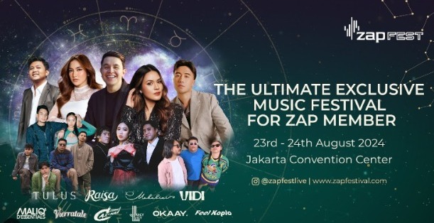 Sementara itu, ZAP Fest 2024 akan menghadirkan deretan musisi ternama Indonesia, yaitu Tulus, Raisa, Vidi Aldiano, Afgan, Mahalini, Maliq & D’Essentials, Vierratale, Juicy Lucy, OKAAY, Denny Caknan, dan Feel Koplo./Mik.