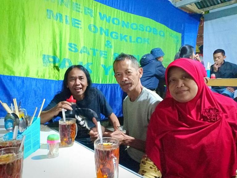 Kami terus berbincang banyak hal tentang Wonosobo. Apalagi Irish yang seorang wartawan punya banyak pertanyaan. Keingintahuannya tentang Wonosobo tak ada habisnya. Hingga pesanan datang. Teh hangat, jeruk panas, mie ongklok, dan sate tersaji di meja lesehan.